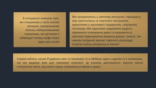 Скористайтесь часом Різдвяних свят та проведіть їх в обіймах один з одним та з книжками, які ми радимо вам для святкової компанії. Ці книжки допоможуть відчути магію очікування свята, від якого серце сповнюється вірою у дива!