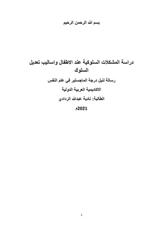 تتناول هذه الدراسة سلوك الأطفال ومشكلاتهم السلوكية والنفسية، وتهدف إلى تحديد أساليب تعديل السلوك المناسبة للتعامل مع تلك المشكلات. تستعرض البحث فرضيات تتعلق بدور الأسرة والبيئة في تأثير نتائج تعديل السلوك. كما تقدم الدراسة استراتيجيات وأساليب عملية لتطبيق السلوكيات المعدلة في حل مشكلات الأطفال المختلفة.