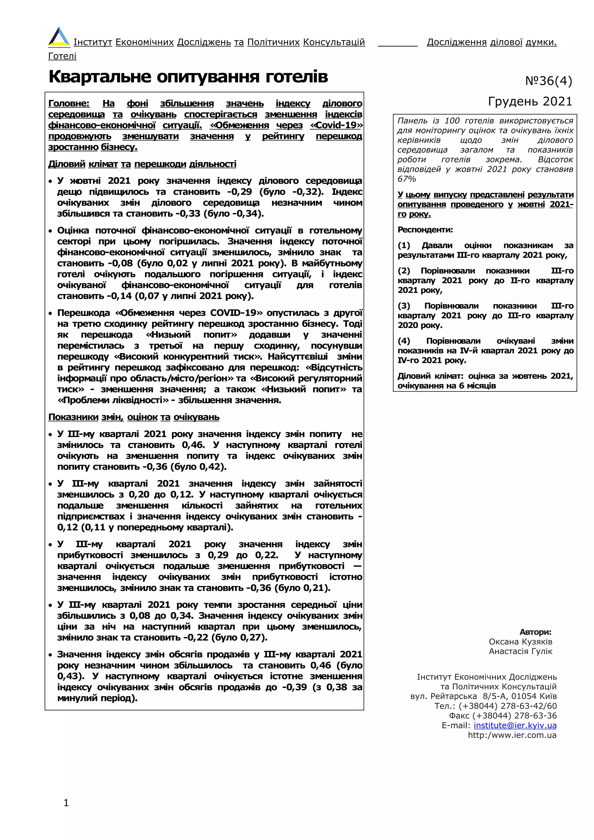 Інститут Економічних Дослідженьта Політичних Консультацій _______ Дослідження ділової думки.