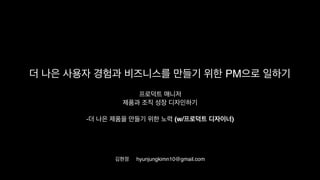 PM과 함께 일하는 디자이너, PM 역할을 겸해야 하는 디자이너분들을 대상으로 PM 직군이 조직과 제품의 성장을 위해 어떤 고민과 노력을 하고 있는지 공유합니다.