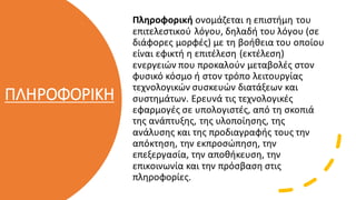 Πληροφορική ονομάζεται ηεπιστήμη του