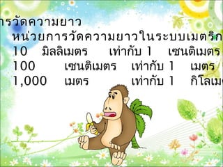 ารวัดความยาว หน่วยการวัดความยาวในระบบเมตริก 10 มิลลิเมตร เท่ากับ