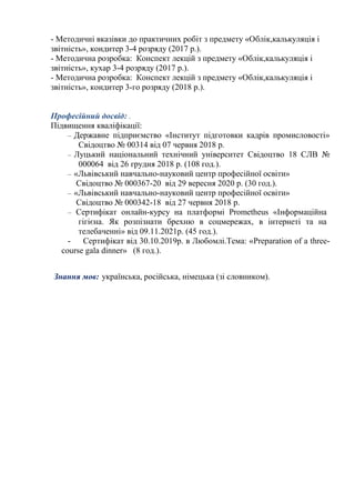 - Сертифікат від 30.10.2019р. в Любомлі.Тема: «Preparation of a three-