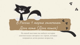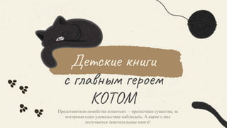 Документ описывает разнообразные детские книги с котами в главных ролях, включая персонажей, созданных такими авторами, как Эдуард Успенский и Екатерина Матюшкина. Упоминаются произведения о коте Матроскине и коте Да Винчи, а также оригинальные иллюстрации и различные форматы книг, которые привлекают детей. Также обсуждается влияние книг на развитие детей и популярность котов в детской литературе.