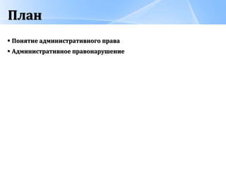 Документ описывает основы административного права, включая его определение, задачи органов управления и принципы правонарушений. Рассматриваются последствия административных правонарушений, виды ответственности и необходимость справедливости и гуманизма в применении мер. Также упоминается теория разбитых окон, подчеркивающая важность предотвращения мелких правонарушений для снижения уровня преступности.