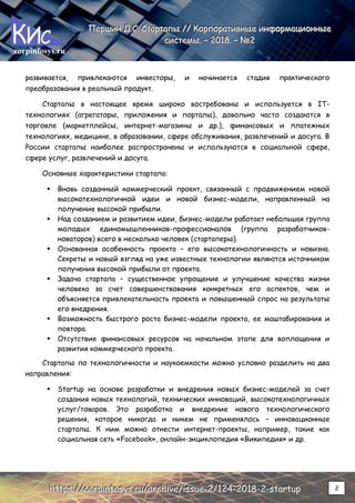 Документ представляет собой аннотацию, описывающую концепцию стартапов, их разновидности, этапы развития и источники финансирования. Основное внимание уделяется стартапам в IT-индустрии, подчеркивая важность инновационных технологий и уникальных бизнес-моделей для достижения успеха. Документ также анализирует риски, связанные с созданием стартапов, и описывает возможности привлечения инвестиций.