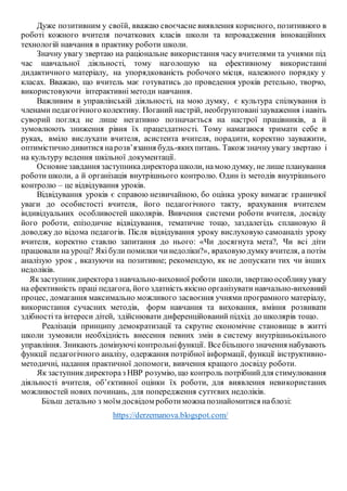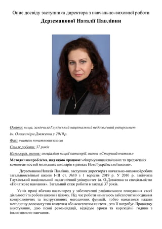 Опис досвіду заступникадиректора з навчально-виховної роботи
