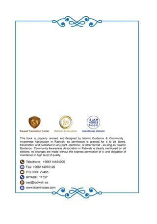 Документ обсуждает достоинства ислама, подчеркивая необходимость строгого следования его принципам и предупреждая о последствиях отклонения от истинного пути. Упоминаются ключевые аят и хадисы, которые подчеркивают, что ислам является единственной принятой религией и что сообщество должно избегать нововведений и разделений. Завершает документ напоминание о единственной истинной общине, следовавшей за пророком Мухаммадом и его сподвижниками.