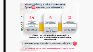 правильну коротку відповідь. Отже, за виконання завдань блоку НМТ з математики