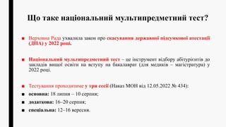 ■ Національний мультипредметний тест – це інструмент відбору абітурієнтів до
