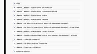 Курс «Математика. Підготовкадо ЗНО» від Prometheus. Він розбитий на дев’ять розділів.