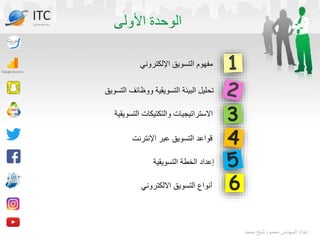تشمل الوثيقة استراتيجيات التسويق الإلكتروني وأساليبه، مع التركيز على أهمية التحليل وفهم سلوك العملاء واحتياجاتهم. يتناول الوثيقة أيضاً كيفية تحسين الظهور في محركات البحث وأهمية المحتوى في جذب العملاء وتحويلهم. كما يشمل التسويق عبر البريد الإلكتروني ووسائل التواصل الاجتماعي كوسائل فعالة للتواصل مع الجمهور المستهدف.