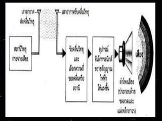 เช่น เครื่องรับวิทยุ เครื่องบันทึกเสียง เครื่อง ขยายเสียง เครื่องรับวิทยุ เป็นอุปกรณ์ที่เปลี่ยนพลังงานไฟฟ้าเป็นพลังงานเสียง โดยเครื่องรับ วิทยุอาศัยการรับคลื่นวิทยุจากสถานีส่ง แล้วใช้อุปกรณ์อิเล็กทรอนิกส์ ขยายสัญญาณเสียงที่อยู่ในรูปของสัญญาณไฟฟ้าให้แรงขึ้นจนเพียงพอที่ ทาให้ลาโพงเสียงสั่นสะเทือนเป็นเสียงให้เราได้ยิน ดังแผนผัง