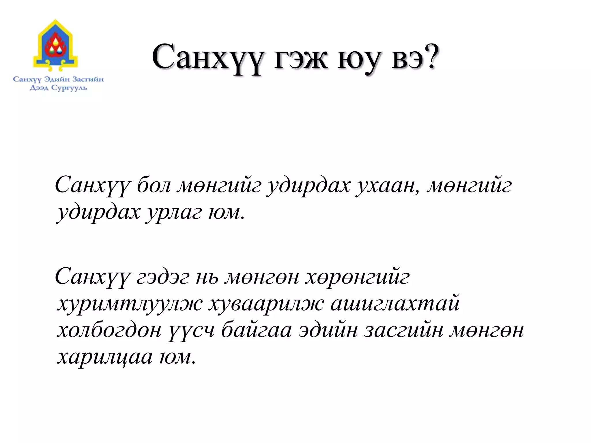 Санхүү гэдэг нь мөнгөн хөрөнгийг