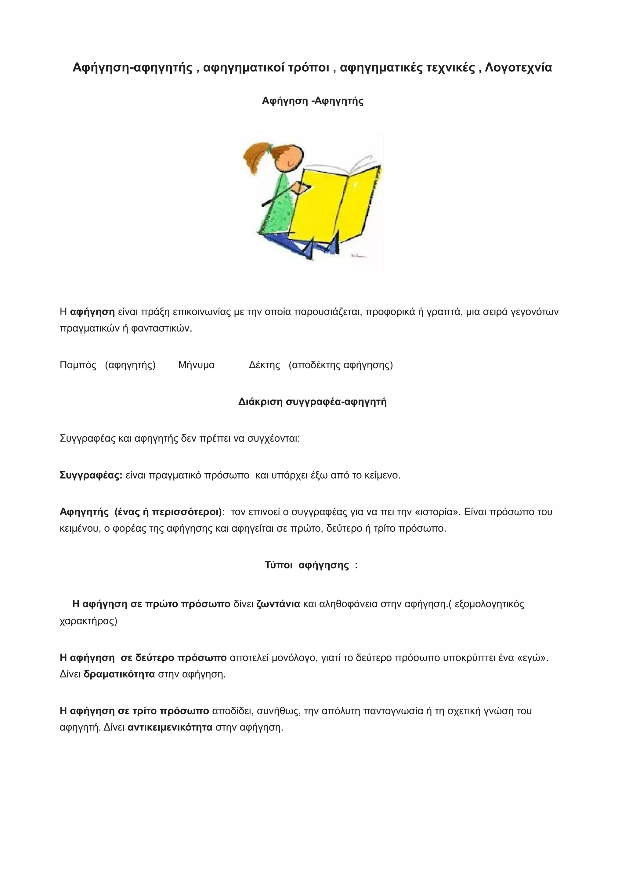 Αφήγηση-αφηγητής , αφηγηματικοίτρόποι , αφηγηματικές τεχνικές , Λογοτεχνία