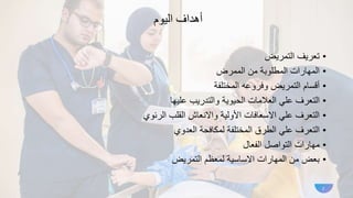 تتناول الوثيقة مفاهيم وأساسيات التمريض وأهمية المهارات المطلوبة للممارسين، بما في ذلك التواصل ومهارات التعامل مع المرضى. كما تركز على أقسام الرعاية المختلفة والمهارات الأساسية اللازمة لتحقيق جودة الرعاية الصحية، بالإضافة إلى استراتيجيات مكافحة العدوى والإسعافات الأولية. توضح الوثيقة أهمية التعاون ضمن الفريق الصحي ورعاية الفئات المختلفة من المجتمع.