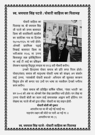 करीन। स्व. जयपाल हसिंि पटले िी ना आपरी कलम ला पोवारी सिंस्क