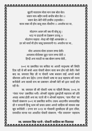 स्व. जयपाल हसिंि जी द्वारा कहवता सिंग्रि, सन २०१० मा "पोवारी