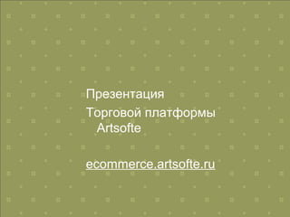 Документ представляет презентацию торговой платформы artsofte, предлагающей готовые программные модули для автоматизации процессов электронной коммерции. Основные преимущества платформы включают конвертацию посетителей в покупателей, оптимизацию бизнес-процессов и управление контентом каталога, что позволяет улучшить удовлетворенность клиентов. Платформа также включает инструменты аналитики и рекомендательные механизмы для повышения лояльности покупателей.