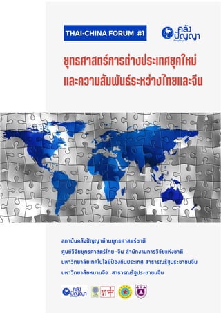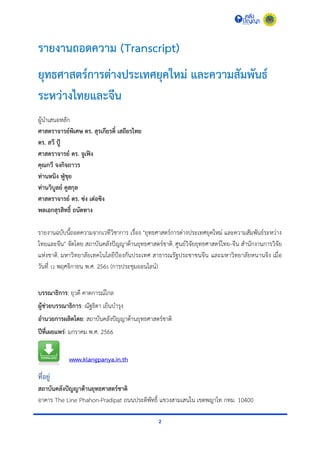 รายงานฉบับนี้ถอดความจากเวทีวิชาการ เรื่อง "ยุทธศาสตร์การต่างประเทศยุคใหม่ และความสัมพันธ์ระหว่างไทยและจีน" จัดโดย สถาบันคลังปัญญาด้านยุทธศาสตร์ชาติ, ศูนย์วิจัยยุทธศาสตร์ไทย-จีน สำนักงานการวิจัยแห่งชาติ, มหาวิทยาลัยเทคโนโลยีป้องกันประเทศ สาธารณรัฐประชาชนจีน และมหาวิทยาลัยหนานจิง เมื่อวันที่ 12 พฤศจิกายน พ.ศ. 2565 (การประชุมออนไลน์)
