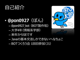 • BOT分類:キャラクターBOT(なりきりBOT)
