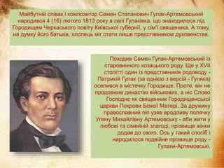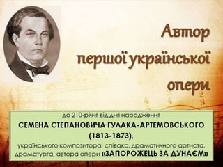 Семен Гулак-Артемовський (1813-1873) - автор опери «Запорожець за Дунаєм» - став чи не єдиним композитором у світовій мистецькій практиці, який сам написав і лібрето, і музику, і виступив у головній ролі.