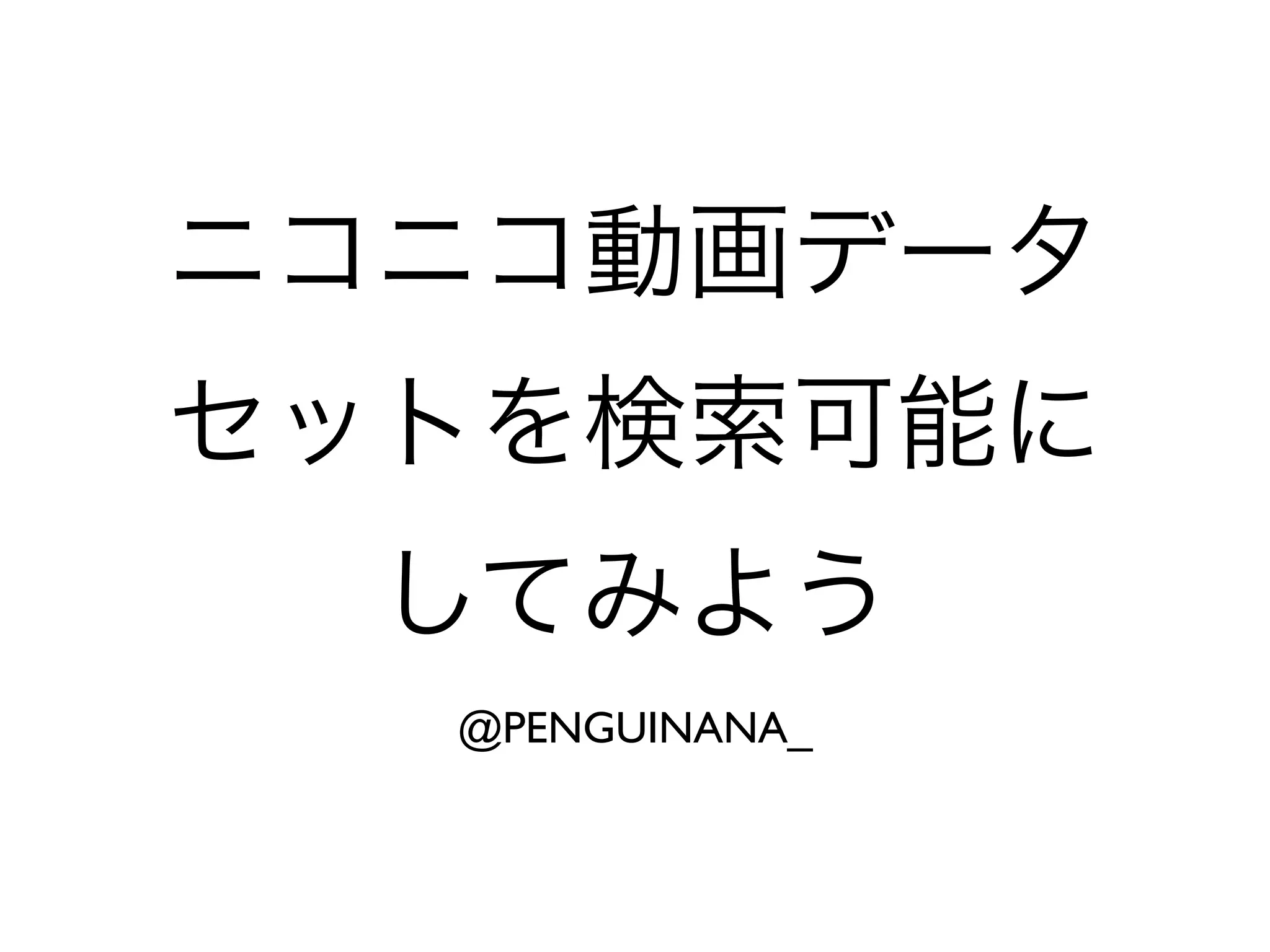 This document discusses setting up Elasticsearch to make the Nicovideo video dataset searchable and analyzable. It describes importing over 25 billion comments from the 60GB JSON dataset into an Elasticsearch cluster on AWS in under 4 hours. Key steps included installing plugins, configuring the cluster, importing the data in bulk, and optimizing mappings and settings for efficiency. The dataset can now be flexibly searched and facets like date can be applied to analyze the comments.