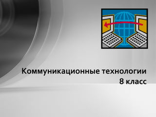 Документ описывает основы коммуникационных технологий для 8 класса, включая схему передачи информации, особенности каналов связи и виды компьютерных сетей. Он рассматривает различные аспекты локальных и глобальных сетей, адресацию в интернет и работу с электронной почтой. Включены также задания для закрепления материала и примеры выполнения, что делает документ учебным пособием по информационным технологиям.