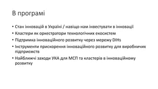 Вебінар 23 серпня проведений Українським кластерним альянсом в рамках проєкту «Експертні консультації. Об’єднаний економічний фронт двох регіонів» що впроваджується за підтримки Програми розвитку ООН (ПРООН) в Україні в межах Програми із відновлення та розбудови миру за фінансової підтримки Європейського Союзу.