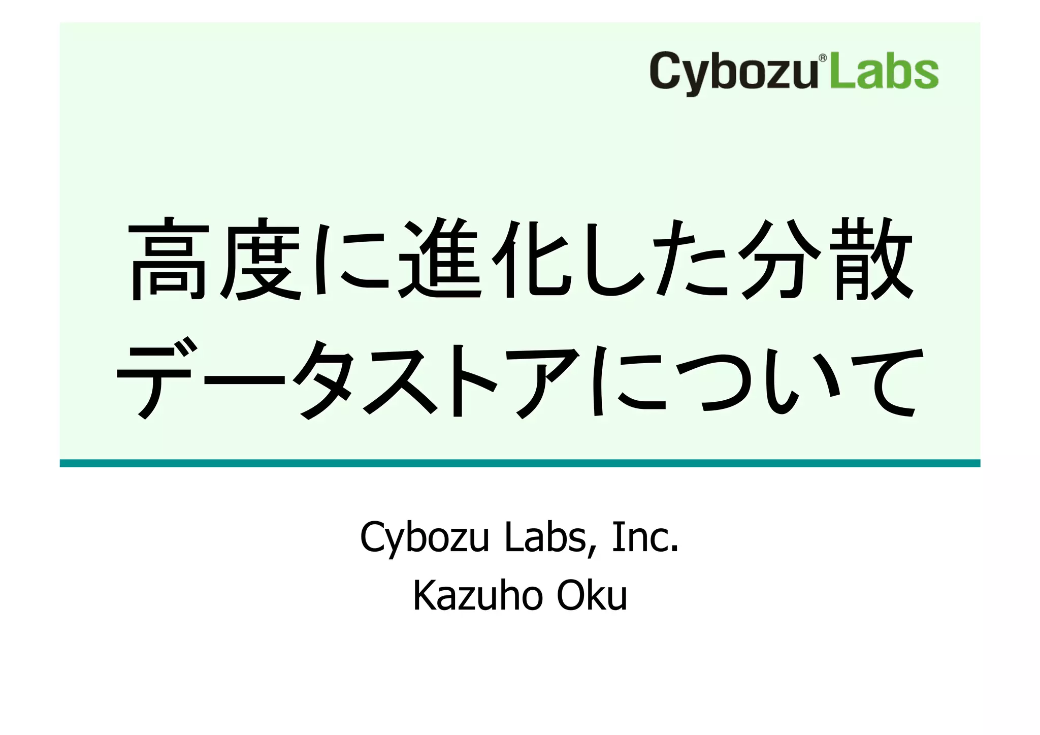 This document discusses different database technologies, including Oracle RAC, Salesforce Force.com, and Google App Engine Datastore. It then focuses on PHP RDBMS options like MySQL Cluster and potential open source alternatives. The rest of the document summarizes the Incline and Pacific databases from Cybozu Labs. Incline provides horizontal sharding for MySQL and supports ACID transactions across shards. Pacific aims to be a high performance alternative to MySQL for small-to-medium workloads without a single point of failure.