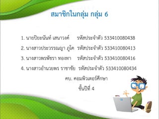 1.นายปิยะนันท์ เสนาวงค์ รหัสประจาตัว 533410080438