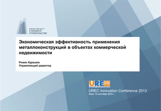Документ рассматривает экономическую эффективность применения металлоконструкций в коммерческой недвижимости, подчеркивая их преимущества, такие как сокращение сроков строительства и снижение затрат на 5-7% по сравнению с монолитным бетоном. Он описывает миссию Украинского центра стального строительства и цели, связанные с продвижением стальной конструкции на рынке. Кроме того, предоставляется анализ стоимости и временных затрат на строительство с использованием различных технологий и материалов.