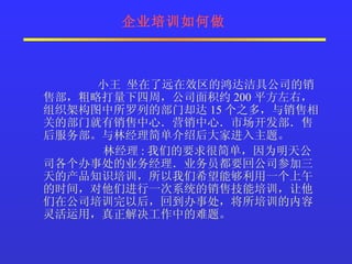 二、 培训体系的概念 1 . 培训部门的组织 A. 培训部门在一间公司的地位 B. 培训部门人员分工 C. 讲师的素求与讲师体系 D. “ 企业是学堂,人人是讲师”,建 造一个学习型组织 2 . 培训计划与预算 A. 培训经费的来源 B. 培训费用的分配 C. 培训年度计划的制订 3 . 培训课程体系 4 . 培训实施 5 . 培训评价与反馈