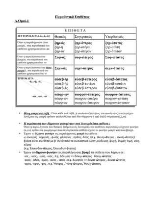 ΔΕΥΤΕΡΟΚΛΙΤΑ (-ός,-ή,-όν) Θετικός Συγκριτικός Υπερθετικός