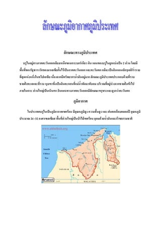 ลักษณะทางภูมิประเทศ บรูไนอยู่ทางภาคตะวันออกเฉียงเหนือของเกาะบอร์เนียว ดิน แดนของบรูไนถูกแบ่งเป็น