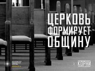 Документ обсуждает важность веры и взаимосвязи в церкви, определяя ее как собрание общины, а не просто здание или организацию. В нем также упоминается, как корни духовной жизни влияют на внешние действия и формы служения. Павел в своем письме призывает к любви и единству среди верующих, чтобы совместно они могли постигать любовь Христа и расти в вере.