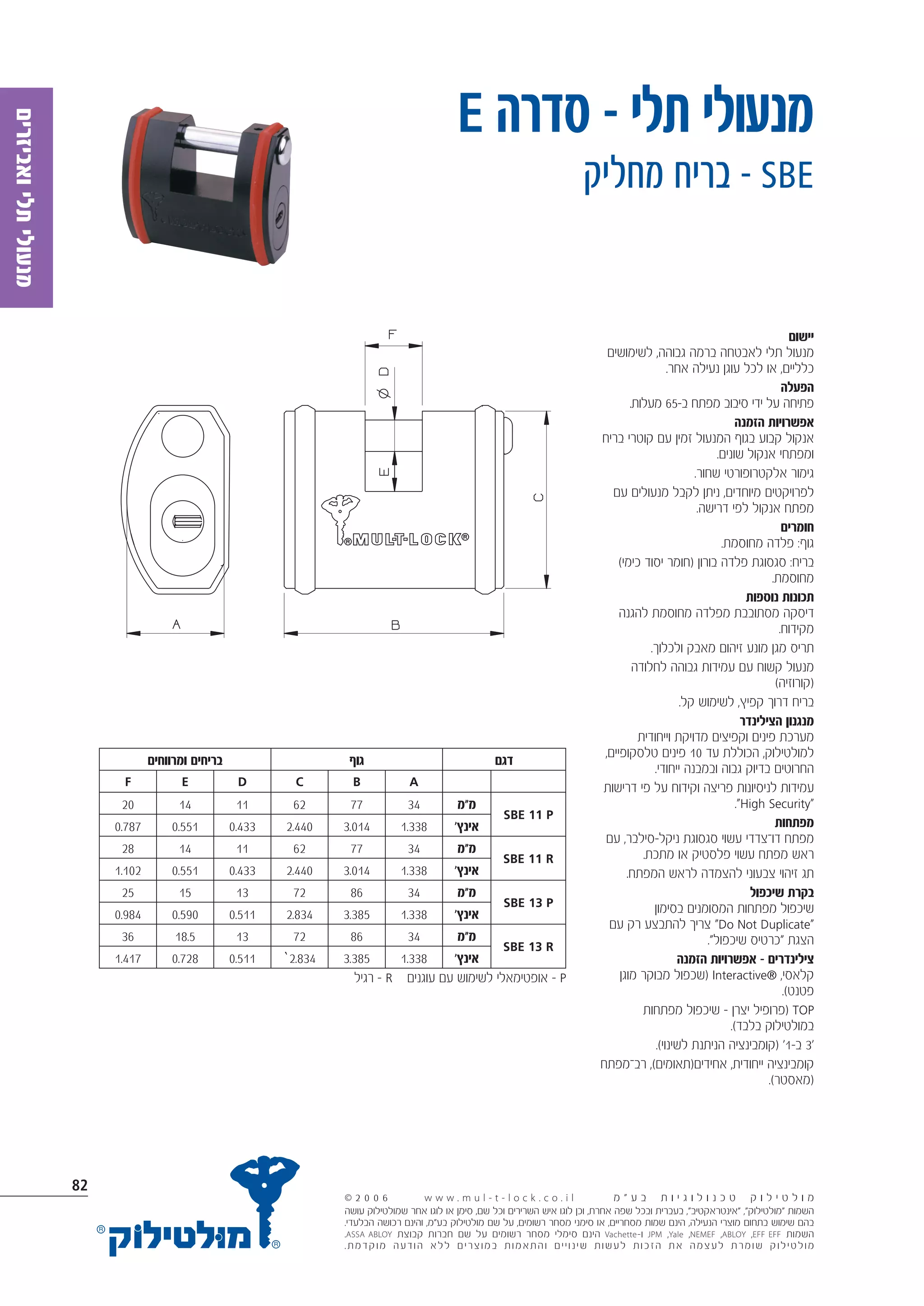 מנעולי תלי סדרה E בריח מחליק מנעולי תלי לאבטחה ברמה גבוהה, לשימושים כללים, עוגני הנעילה של מולטילוק או כל עוגן נעילה מתאים אחר. מושלם ליישומים הדורשים רמה גבוהה להגנה של על הבריח.