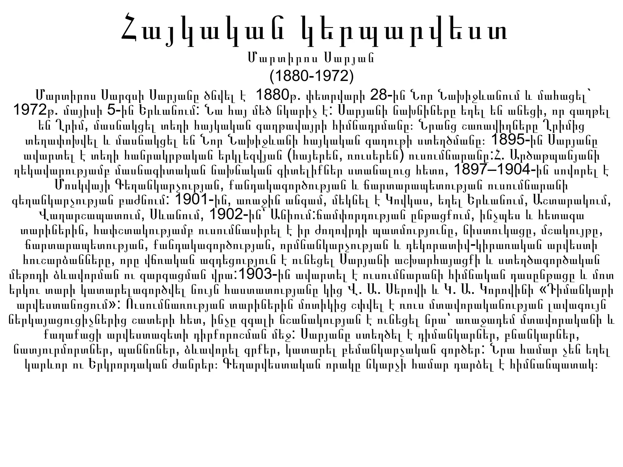 1972 . 5- :թ մայիսի ին Երևանում Նա հայ մեծ նկարիչ է: ,Սարյանի նախնիները եղել են անեցի որ գաղթել