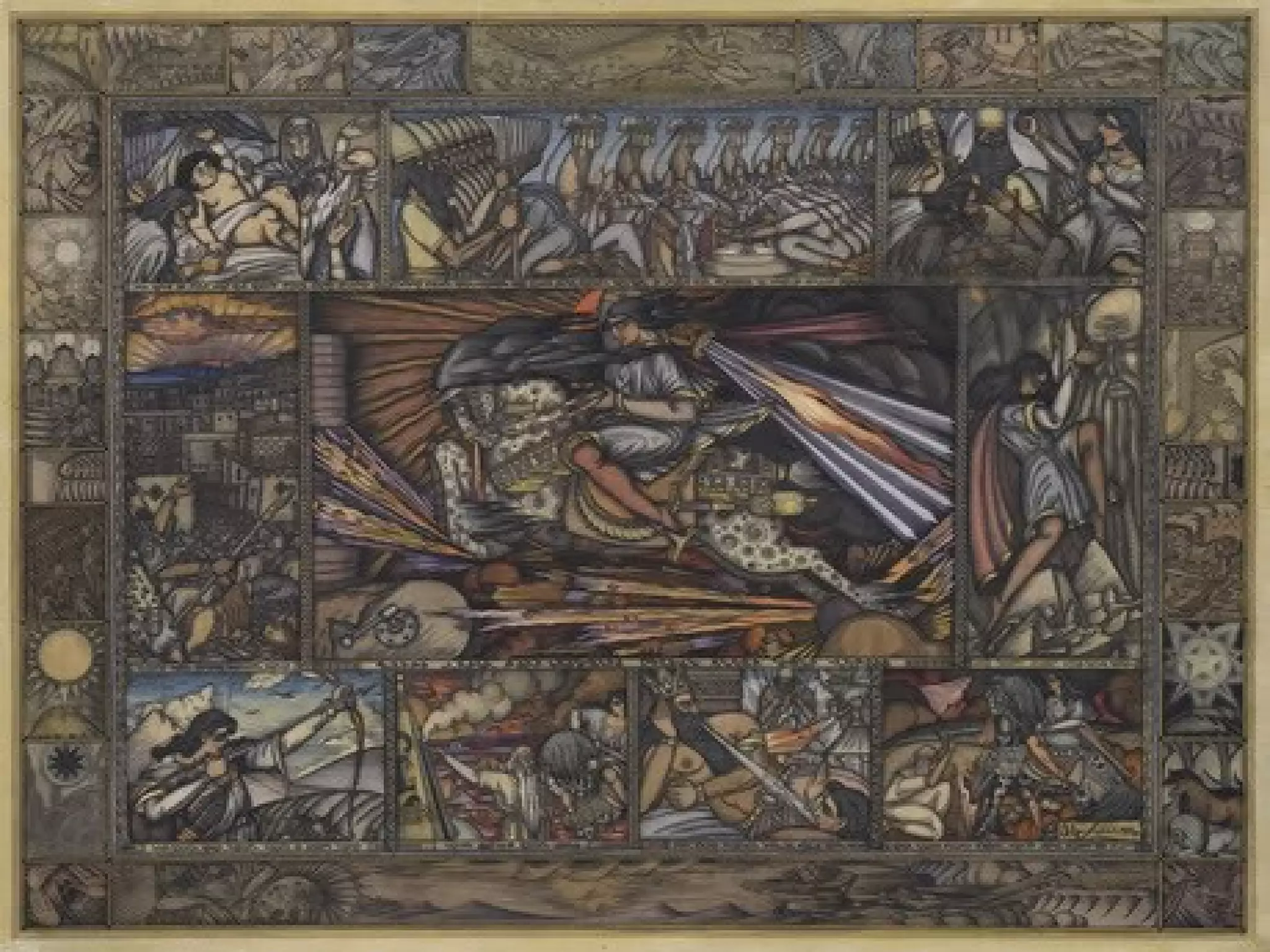 - :Թուր Կեծակին ձեռքին Շուրջը զետեղված են էպոսի երրորդ ճյուղի թեմաներով