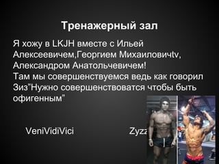 Документ описывает личные увлечения автора, включая занятия в тренажерном зале, кулинарию и просмотр фильмов и сериалов. Автор работает над кулинарными навыками благодаря родителям, шеф-поварам, и делится предпочтениями в музыке и любимых сериалах. Также упоминаются ссылки на ресурсы, содержащие нецензурные выражения.