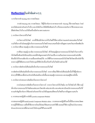 Reflectionในหัวข้อต่างๆๆ 1.ภารกิจการเช่า hosting และ