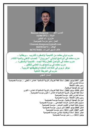 دانكو الحسن هو مدير مدرسة متزوج ولد في 16/08/1972 ويعمل في مجال التعليم منذ سنوات عديدة. لديه خبرة تعليمية متنوعة تشمل التدريس والإدارة والتدريب في مختلف المؤسسات التعليمية. يمتلك أيضًا دورات تدريبية وشهادات معتمدة في مجالات تعليمية متعددة.