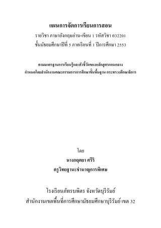 รหัสวิชา อ32201 ชั้นมัธยมศึกษาปีที่ 5 ภาคเรียนที่ 1 ปีการศึกษา 2553