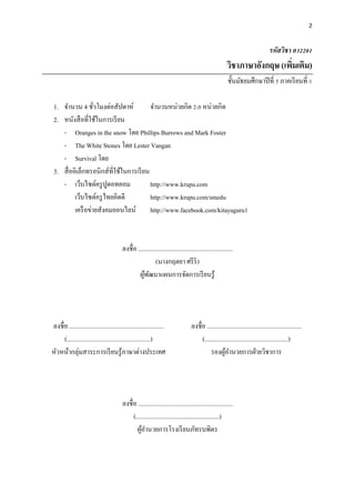 จานวนหน่วยกิต 2.0 หน่วยกิต เวลา 5 ชั่วโมง