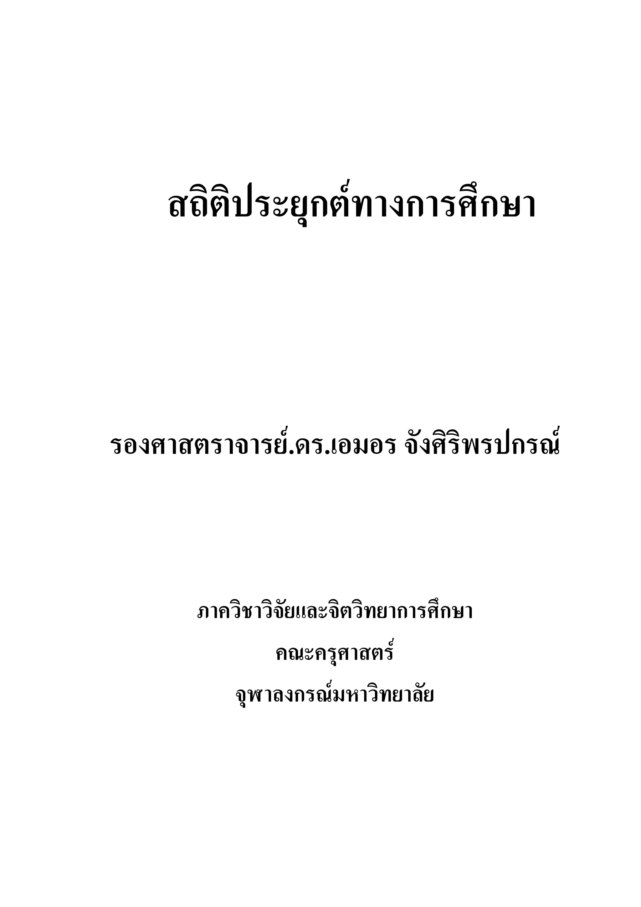 ปริญญาโท เนื้อหาในเลมประกอบดวย 5 บท ไดแก บทที่ 1 มโนทัศนเบื้องตนของสถิติในการประยุกตใช
