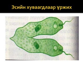 зэрэг эгэл биет үүд, хламидомонад зэрэг нэг эс т замгууд эсийн хуваагдлын замаар үржинэ