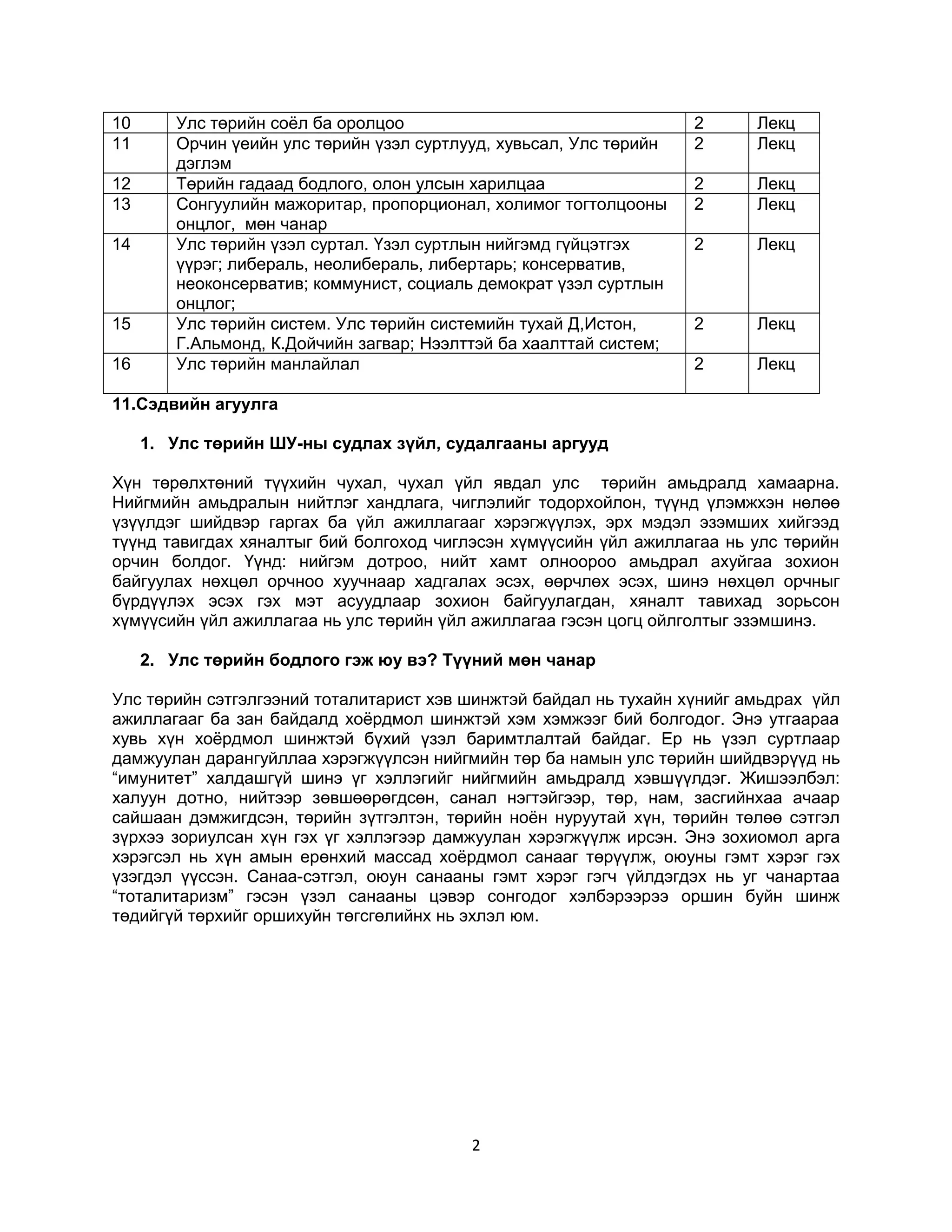 • Улс төрийн суурь онол, үзэл баримтлалуудтай танилцуулах