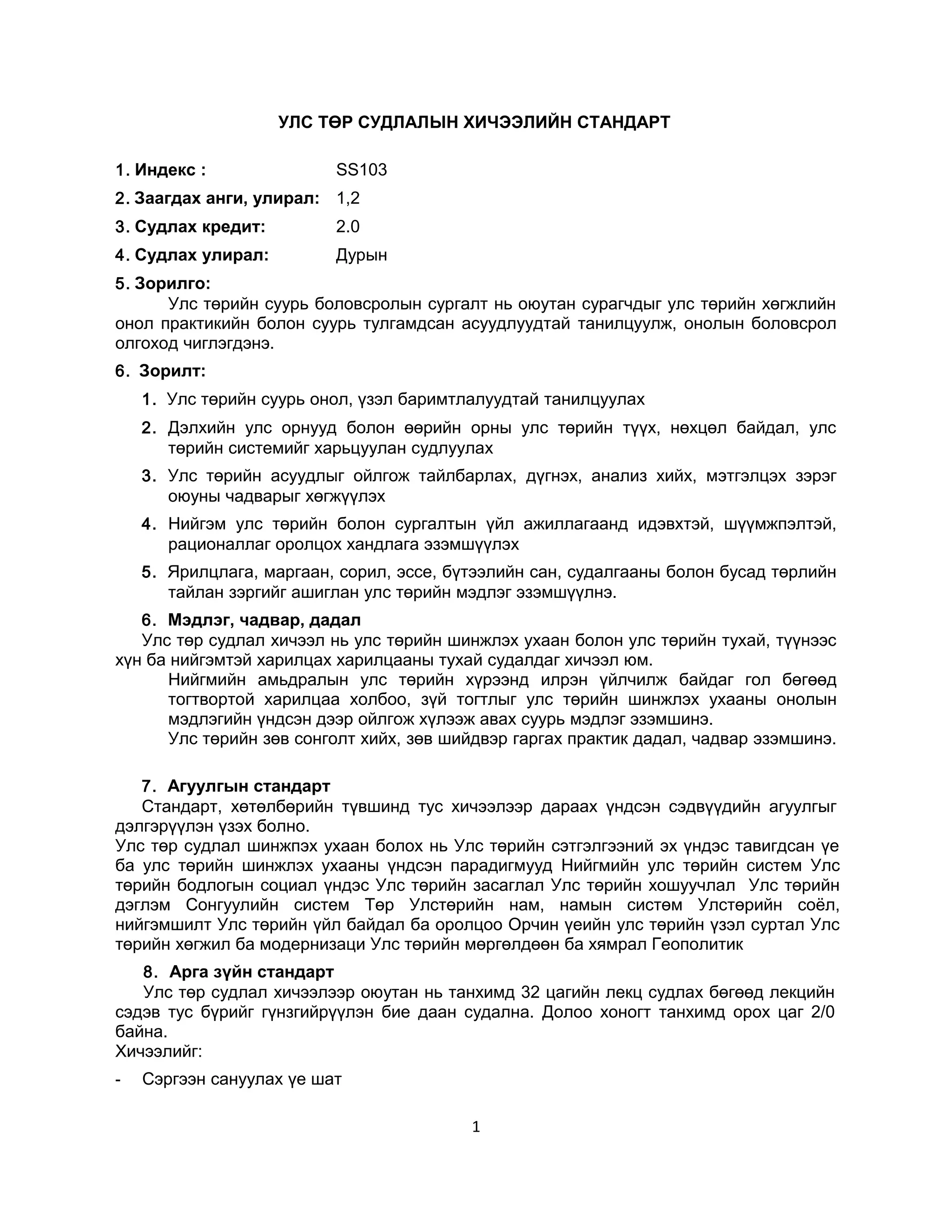 УЛС ТӨР СУДЛАЛЫНХИЧЭЭЛИЙН СТАНДАРТ
