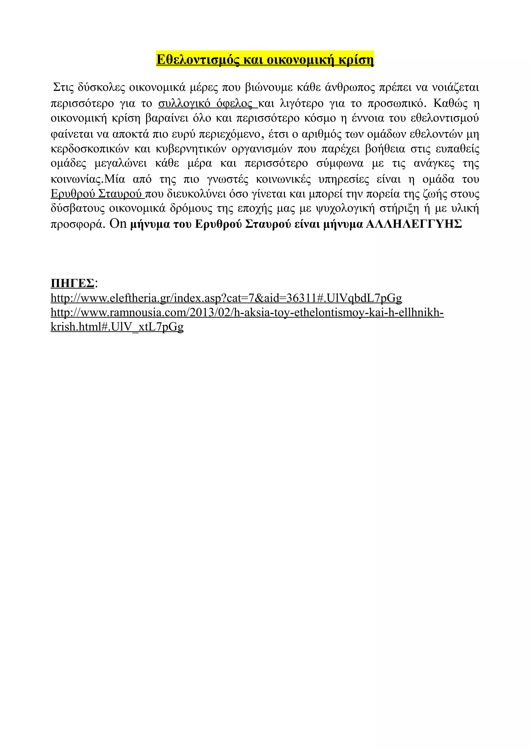 οικονομική κρίση βαραίνει όλο και περισσότερο κόσμο η έννοια του εθελοντισμού