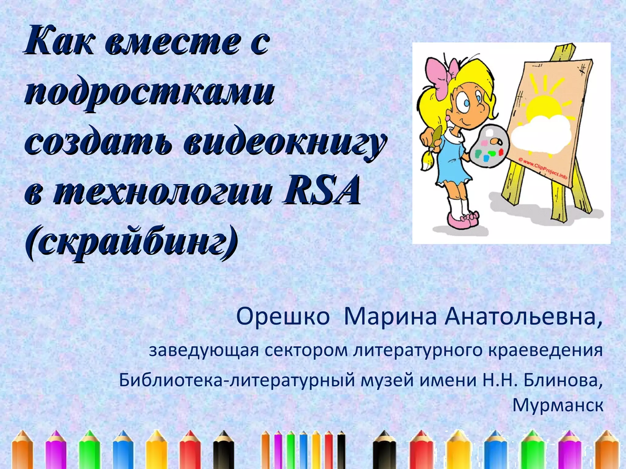 Документ описывает процесс создания видеокниги с использованием технологии скрайбинга, которая включает рисование и озвучивание. Приводятся примеры материалов, инструментов и программ для реализации этой техники, а также этапы работы: выбор темы, написание сценария, создание эскизов, запись звука и монтаж видео. Также рассматриваются различные типы скрайбинга и сервисы для презентаций.